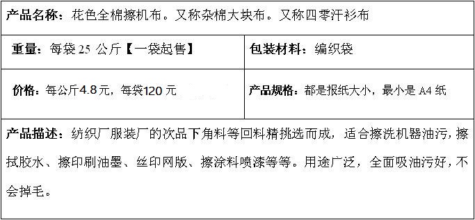 雜色棉大布碎布25GK