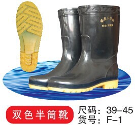 雨利王 F-1 男士雙色半筒雨靴 耐酸堿橡塑三防靴 勞保靴