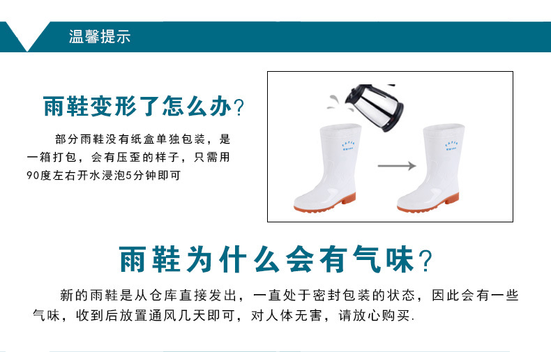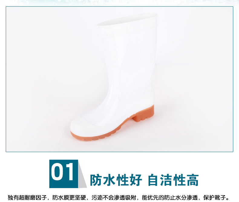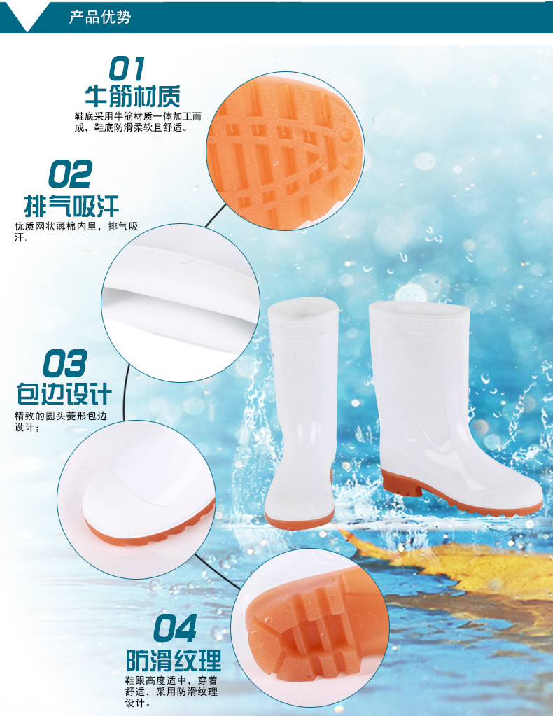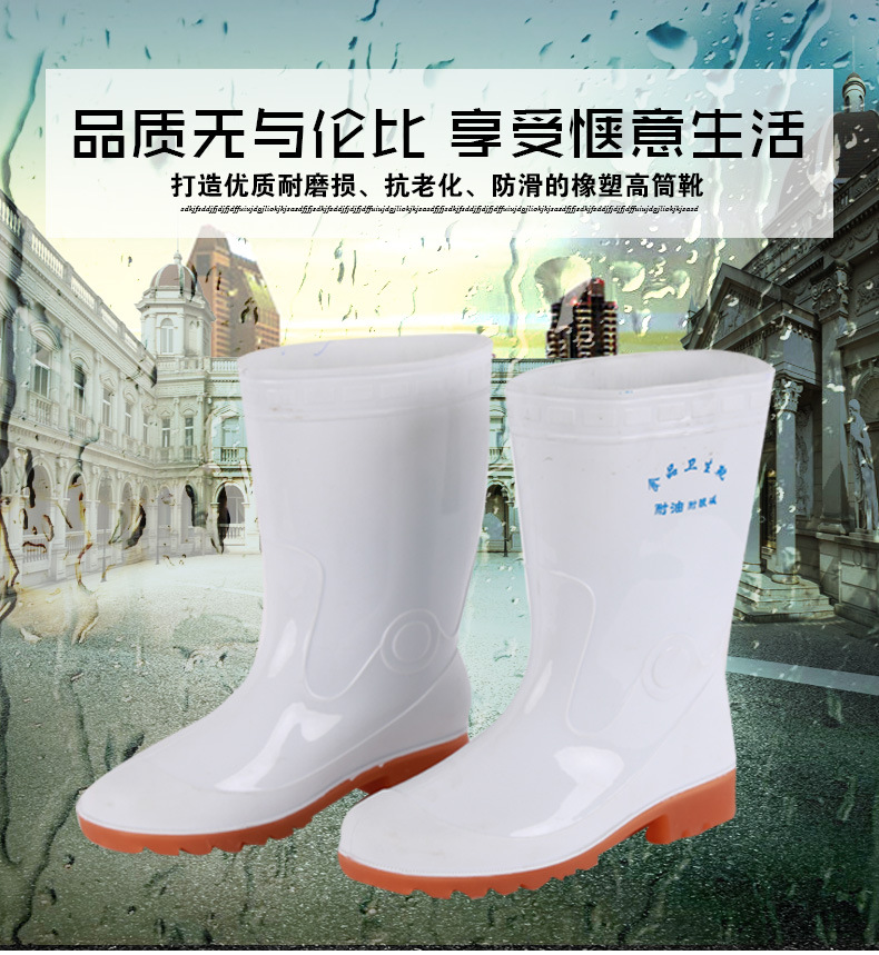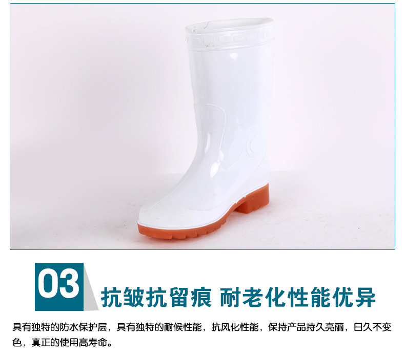 名稱:中筒雨靴 顏色:白色 材質(zhì):橡膠 用途:適用于漁業(yè)、工礦業(yè)、乳業(yè)、農(nóng)業(yè)、食品車間等
