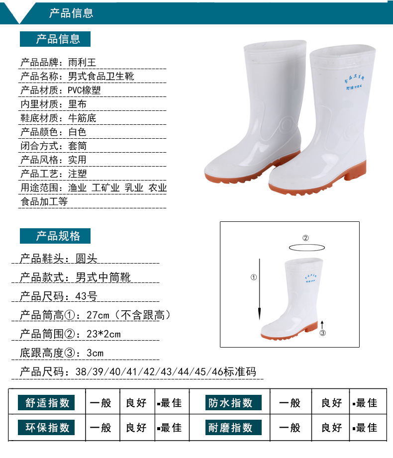 雨利王F-1白色半筒食品衛(wèi)生雨鞋 環(huán)保 耐油耐酸堿雨靴